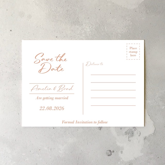 Physical: Simply provide your wedding details, I will design, send you a proof to review and once approved, print and ship your postcards.
